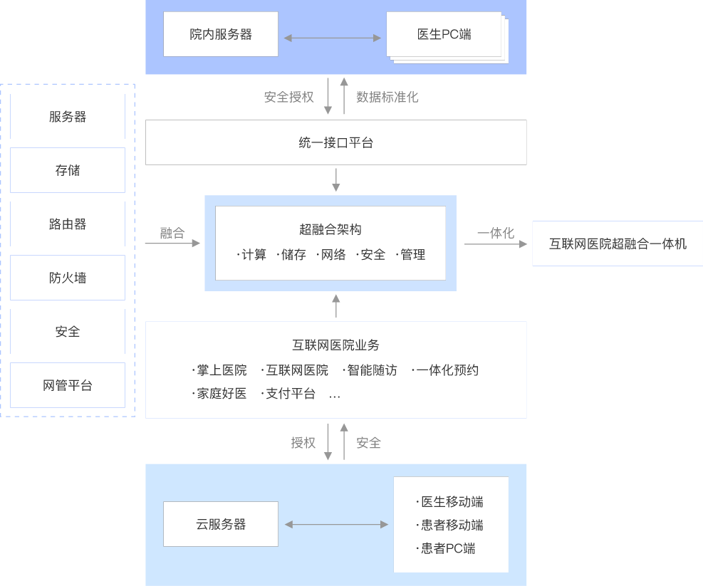 整合世外云-专注高性能、高性价比简单好用的云计算产 品、微信、觅影、视频和支付等产品及合作伙伴的产品服务,提供全行业、全流程的医疗大健康解决方案。